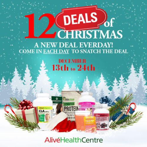 Still stumped on what to get your friends and loved ones for the holidays? Give the gift of Health! Come on into an Alive Health Centre and Morning Sun each day to snatch the deal of the day!